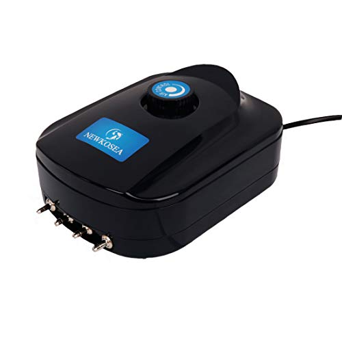 - If you want a 4 outlet air pump which is “value for money” then you shall go for the NEWKOSEA 12W 254GPH Aquarium Air Pump Oxygen Pump 4 Outlets Ultra Quiet with Adjustable Air Flow for 30 to 125 Gallon Tank (4 Outlet)