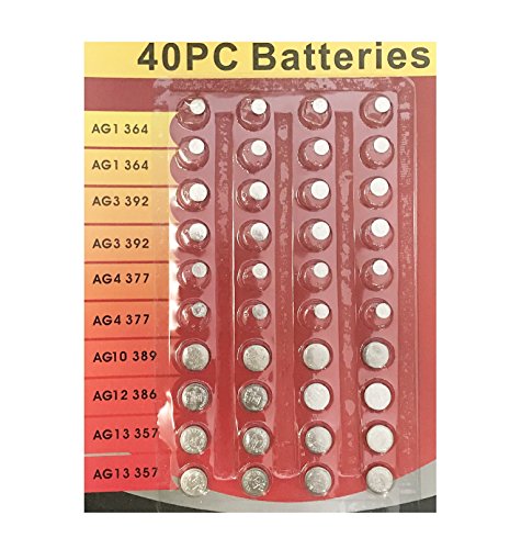 12. Cotchear 40pcs Alkaline Cell Batteries Assorted 1.5 Volt AG1/LR621 AG3/LR41 AG4/LR626 AG5/LR754 AG12/LR43 AG13/LR44 Coin Batteries Set 0% Mercury -Coin & Button Cell