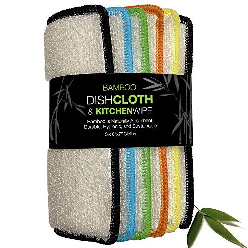 12. Whiff Bamboo Dishcloths & Kitchen Cloths, Sustainable, Scrubbing Power, Naturally Hygienic, Washable Absorbent Durable, Reusable, Cleaning Essentical, Dish Rags, Replace Your Sponge (BDC6X7inch) -Home & Kitchen