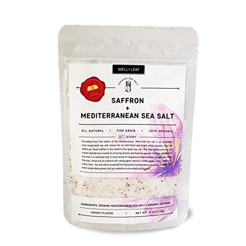 50. Gourmet Mediterranean Sea Salt infused with Saffron, 100% Organic, Kosher, Non-GMO, Chemical and Gluten-Free 4oz -Grocery & Gourmet Food