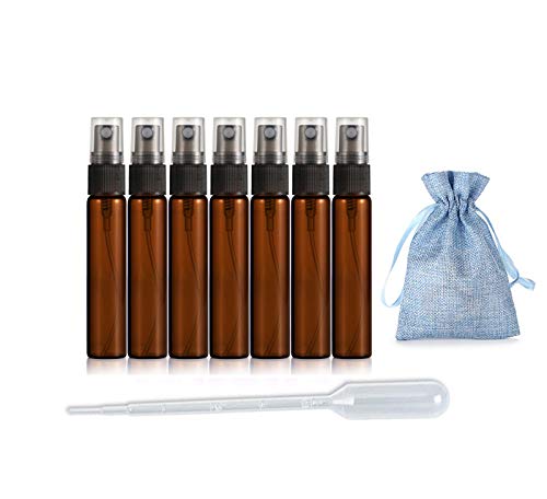 48. JJKMALL- 10PCS Amber Brown 10ML 1/3OZ Protable Refillable Atomizer Spray Travel Perfume Bottle Hydrating Empty Bottle + 1pc gift Storage bag + 1pc 3ml Dropper -Beauty & Personal Care