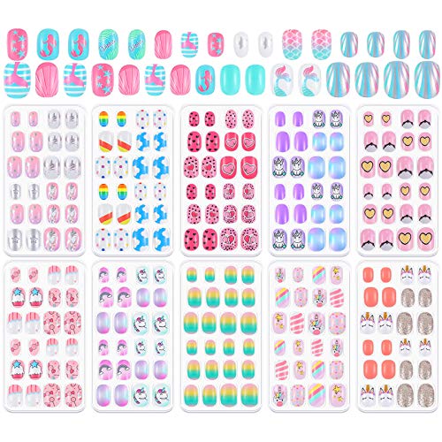 - If you want the one which has similar features to the best, then you shall consider going for 432 Pieces Children False Nails Press on Short Artificial Fake Nails Kids Full Cover Short False Fingernails for Girls Kids Nail Decoration (Unicorn Theme)