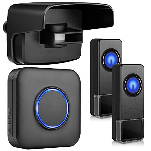 36. Driveway Alarm System, Weatherproof Outdoor Motion Sensor Detector Doorbell, Wireless Security Alert System with 58 Chimes/5 Level Volumes/LED Flash for Home, Yard, Garage, Gate with 2PCS Push Buttons -Motion Detectors