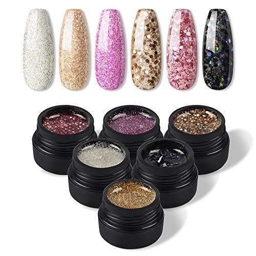 - Super-strong wear and combination with top and base gel polish coat, your nail arts will always keep brilliant shine, no chips or smudges (Glitter gel nail polish is a little thicker because of richer ingredients, when apply glitter gel polish, keep gel polish layer thinner than usual, then cure to dry under UV LED lamp).