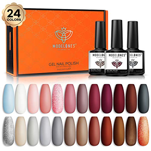 - If you are looking for the best gold gel nail polish: You shall consider going for 24 Pcs Gel Nail Polish Kit, Fall Winter Glitter Purple Grey Brown Gel Polish Gel Nail Kit Collection for Nail Art Manicure Salon By Modelones Christmas Gifts