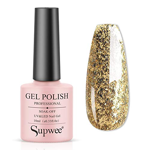34. Supwee Glitter Gel Nail Polish Soak Off UV LED Nail Gel for Art Starter Manicure Salon DIY at Home Diamond Gold Nail Gel 10ML -Beauty & Personal Care
