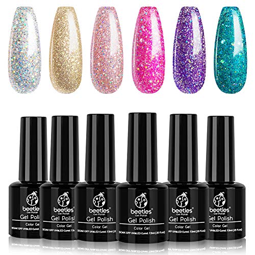 1. Beetles Black Gold Glitter Gel Nail Polish Set – 6 Colors White Silver Rose Glitter Gel Polish Kit Soak Off Nail Gel Kit, 7.3 ml Each Bottle Christmas Gel Nail Art New Year Holiday Gifts Box -Beauty & Personal Care