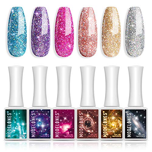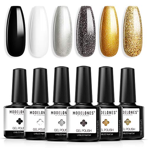 2. Modelones Black Gold Gel Nail Polish, Glitter Grey White Holiday Fall Gel Polish Kit, 6PCS 10ML Winter Gel Nail Set Top and Base Coat Needed LED Lamp Nail Gel with Gift Box Ideal for Salon DIY at Home -Beauty & Personal Care