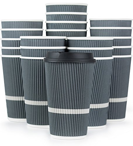 42. Glowcoast Disposable Coffee Cups With Lids – 16 oz To Go Coffee Cup (80 Pack). Large Travel Cups Hold Shape With Hot and Cold Drinks, No Leaks! Insulated Ripple Cups Protect Hands, No Sleeves needed! -Kitchen & Dining Features