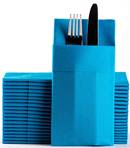 23. Blue Dinner Napkins Cloth Like with Built-in Flatware Pocket, Linen-Feel Absorbent Disposable Paper Hand Napkins for Kitchen, Bathroom, Parties, Weddings, Dinners or Events, 1/8 Fold, Pack of 50 -Disposable Napkins