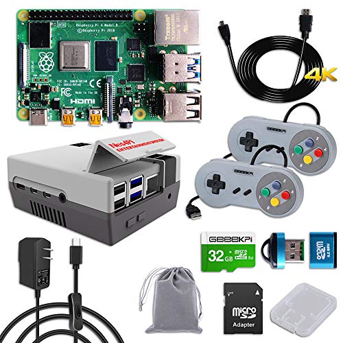 16. GeeekPi Raspberry Pi 4 8GB RAM Starter Kit with 32GB Micro SD Card, Nes4Pi Case, 5V 3A USB-C Power Supply, 2PCS Game Controllers, Heatsinks, Cooling Fan, Micro HDMI Cable and SD Card Reader -Computer Cases