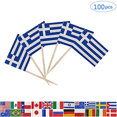 26. Tectsia Country Greek Toothpick Flag, Greece Flags, 100 Pcs Cupcake Toppers Flag, Small Mini Stick Flags Picks Party Decoration Celebration Cocktail Food Bar Cake Flags -Cocktail Picks