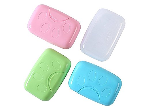 8. PUTING Removable Soap Drainers Plastic Soap Holder Portable Container Soap Saver Box Case for Bathroom Shower Home Outdoor Camping Set of 4… -Home & Kitchen