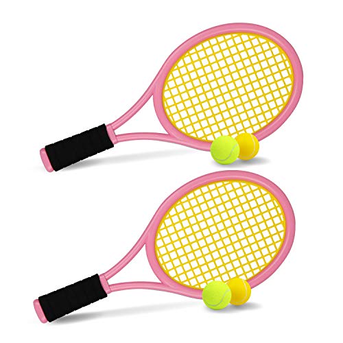 44. Tennis Set for Children,17 Inch Plastic Tennis Racket with 2 Soft Balls and 2 Tennis Balls for Kid,Toddler Outdoor/Indoor Sport Play -Sports & Outdoors