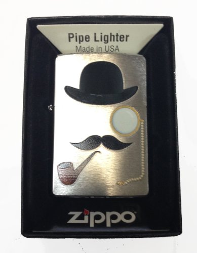 19. Zippo Custom Lighter – Smoking Man w/Top Hat, Pipe, Eye Glass & Mustache Rare! -Health & Household