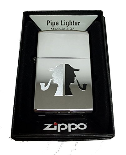 36. Zippo Custom Lighter – Classic Detective Pipe Man Silhouette – Regular High Polished Chrome -Health & Household