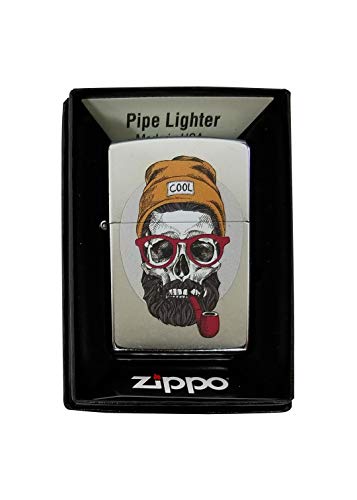 21. Zippo Custom Lighter – Street Chrome Cool Bearded Hipster Skull with Smoke Pipe Design Collectible Zippo Lighter Gift for Him, for Her, for Them, for Men, for Women, for Boys, for Girls, for Family -Health & Household